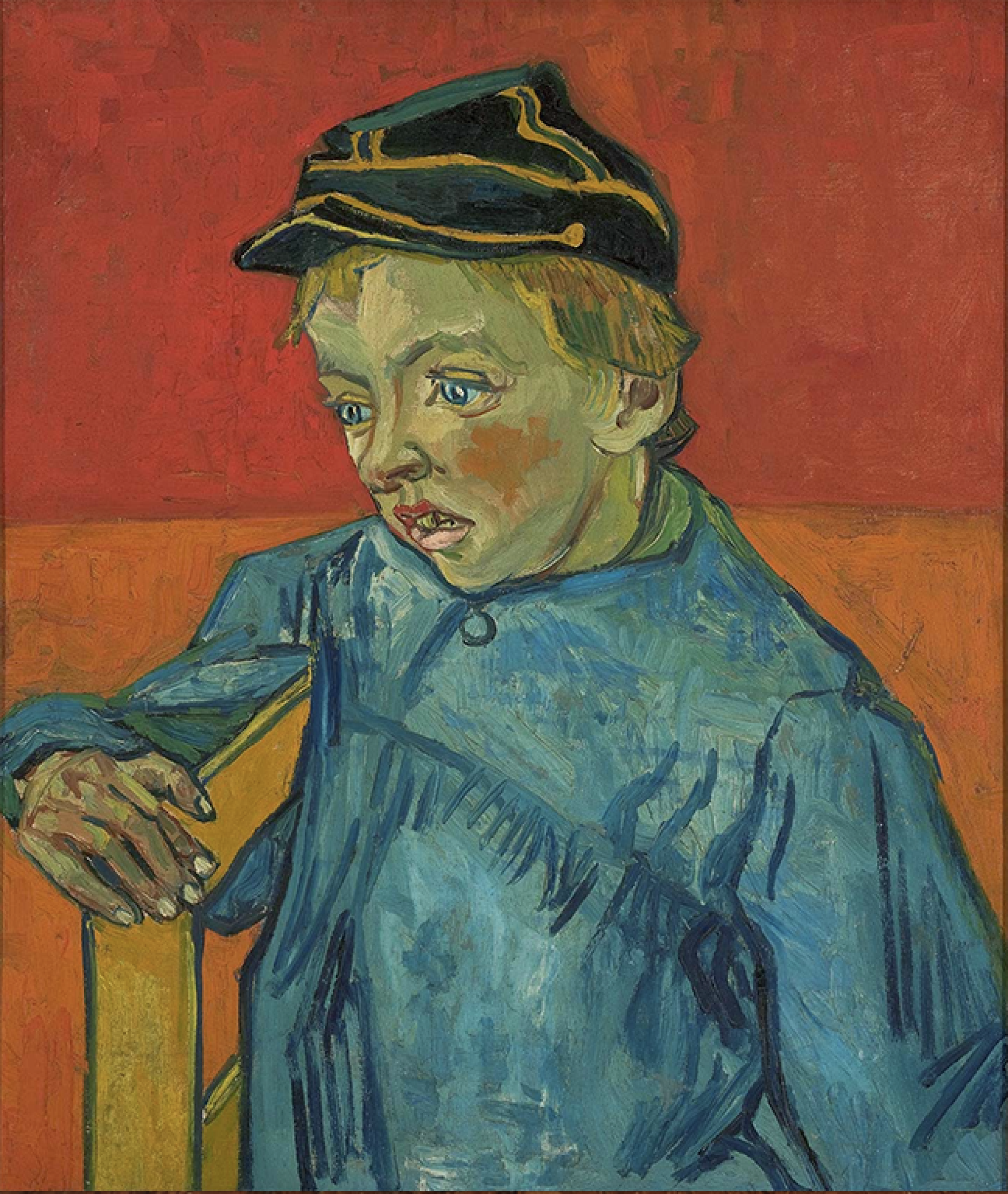 ปกติเวลาที่นึกถึงวินเซนส์ แวนโก๊ะ ส่วนใหญ่เราจะนึกถึงภาพดอกทานตะวัน(Sunflower) เป็นอย่างแรก หรือไม่อย่างนั้นก็ต้องเป็นภาพราตรีประดับดาว (Starry night) แต่แวนโก๊ะมีภาพเขียนอื่นๆ อีกเยอะแยะเลย ผู้เขียนได้อ่านบทความทางวิชาการเรื่องหนึ่งเกี่ยวกับสีบนภาพเขียนของแวนโก๊ะ ซึ่งไม่ใช่ภาพที่เราคุ้นเคยอย่างภาาพอกทานตะวัน หรือราตรีประดับดาว แต่เป็นภาพเด็กผู้ชายสวมเสื้อสีฟ้าบนพื้นหลังสีแดงส้มที่มีชื่อว่า "The schoolboy" ภาพนี้มีขนาด 63.5 x 54 เซนติเมตร แวนโก๊ะเขียนภาพนี้ในปี 1888 ในช่วงที่เขาอาศัยอยู่ในอาร์ลส์ (Arles) ภาพนี้เป็นเสมือนตัวแทนของคามิลล์ รูแลง (Camille Roulin) ลูกชายของบุรุษไปรษณีย์เมืองอาร์ลส์ ชื่อโจเซฟ รูแลง (Joseph Roulin) ซึ่งแวนโก๊ะยังได้วาดภาพเขาไว้หลายภาพ