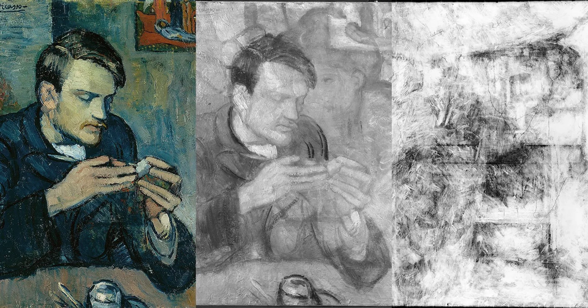 ภายใต้สีสันอันหม่นหมองของรูปบุคคลเหมือนของมาเตว เฟอร์นันเดช เด โซโต (Portrait of Mateu Fernández de Soto) ของปิกัสโซ พบว่ามีภาพวาดหญิงสาวลึกลับถูกปกปิดซ่อนเร้นไว้เป็นเวลานานกว่าศตวรรษ การใช้เทคโนโลยีทางภาพขั้นสูง ทั้งการถ่ายภาพอินฟราเรดและเอกซเรย์ช่วยในการค้นหารูปร่างที่อยู่ใต้ชั้นสีของผลงานยุค Blue Period ในยุคแรก ทำให้ได้ข้อมูลเชิงลึกใหม่ๆ เกี่ยวกับกระบวนการสร้างสรรค์ของปิกัสโซ รวมถึงการตั้งคำถามเกี่ยวกับตัวตนของบุคคลที่ถูกซ่อนไว้